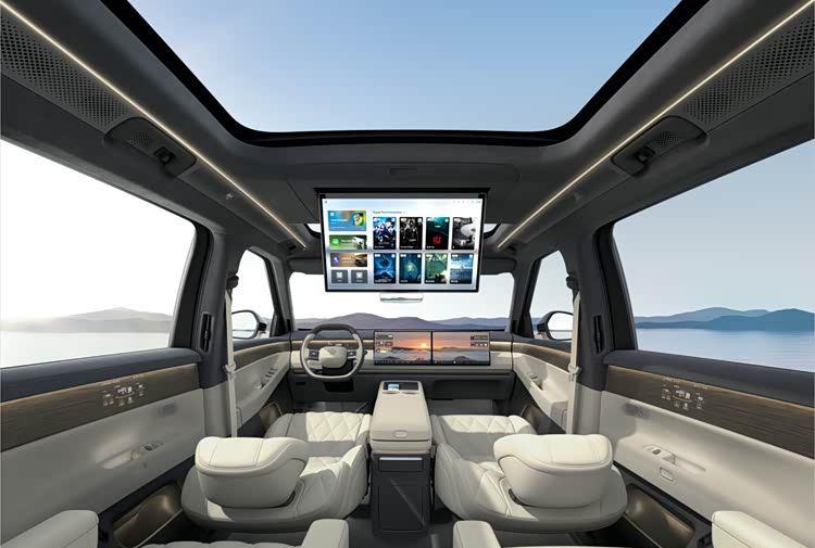 在智能交互与座舱氛围营造方面,ID. ERA 9X 也展现出了旗舰车型的配置水准。车型搭载了 15.6 英寸超高清中控主副驾双联屏,这一配置为驾乘人员提供了高效的人机交互体验,让车内操作更加便捷。针对后排乘员的体验,车型配备了 21.4 英寸后排可折叠吸顶大屏,同时搭配视角补偿膜,有效拓展了观看视野,为后排驾乘人员打造出沉浸式的影音体验。