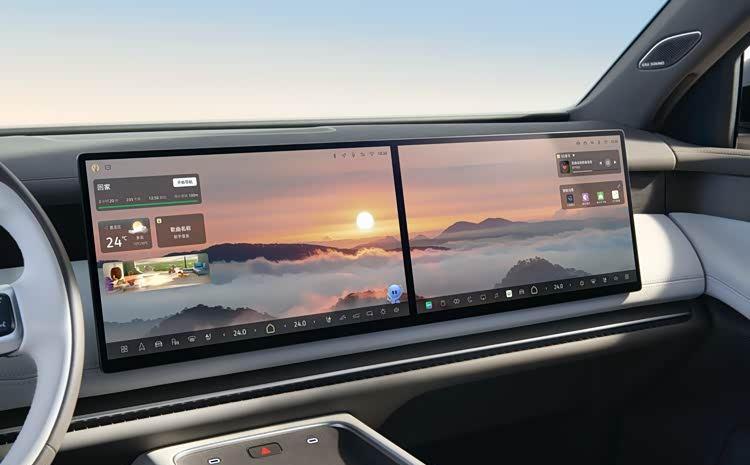在空间布局上,该车型采用了一体环抱式的座舱架构,一道连续流畅的线条从驾驶席前方延伸开来,沿水平方向延展并柔和包裹至两侧车门,形成了完整且统一的空间轮廓。这样的设计不仅在视觉上增强了座舱的整体感,也能为车内驾乘人员营造出稳定、安心的空间体验。